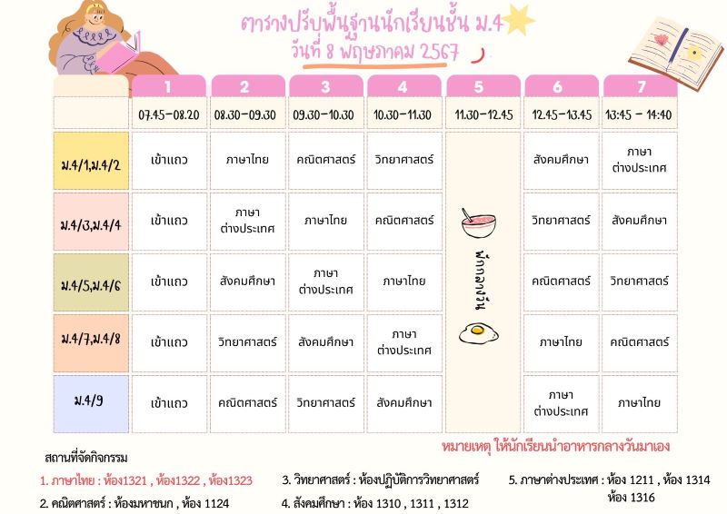 แนวปฏิบัติในการเรียนปรับพื้นฐาน นักเรียนชั้นม.1 และม.4