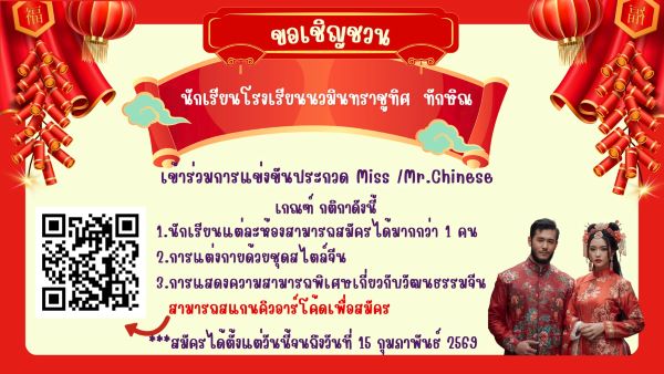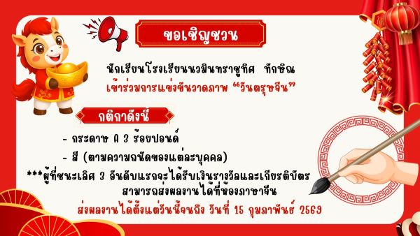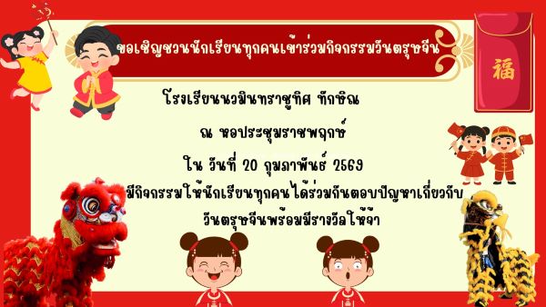 ขอเชิญชวนคณะครู บุคลากรทางการศึกษา และนักเรียนทุกคนเข้าร่วมกิจกรรมวันตรุษจีน