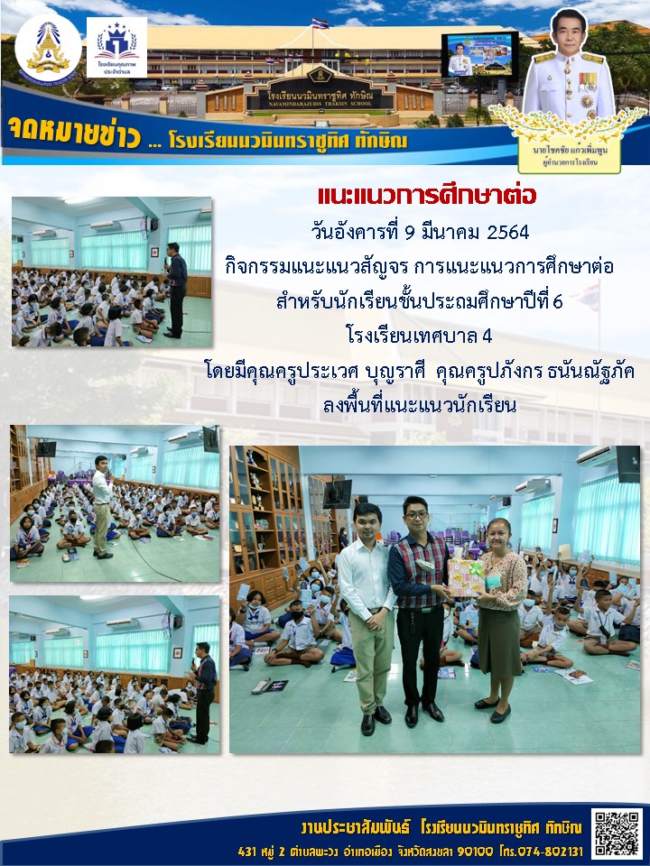 - ประกาศรับนักเรียน ชั้นม. ๔ ประเภทโควต้ารับตรง