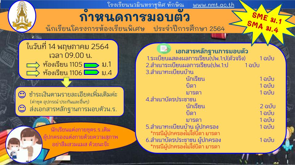 รายชื่อผู้มีสิทธิ์สอบคัดเลือก ห้องเรียน SME ชั้นม.1 |