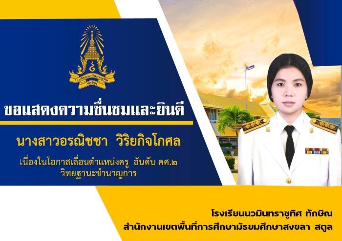- ขอแสดงความยินดีกับครูอรณิชชา วิริยกิจโกศล