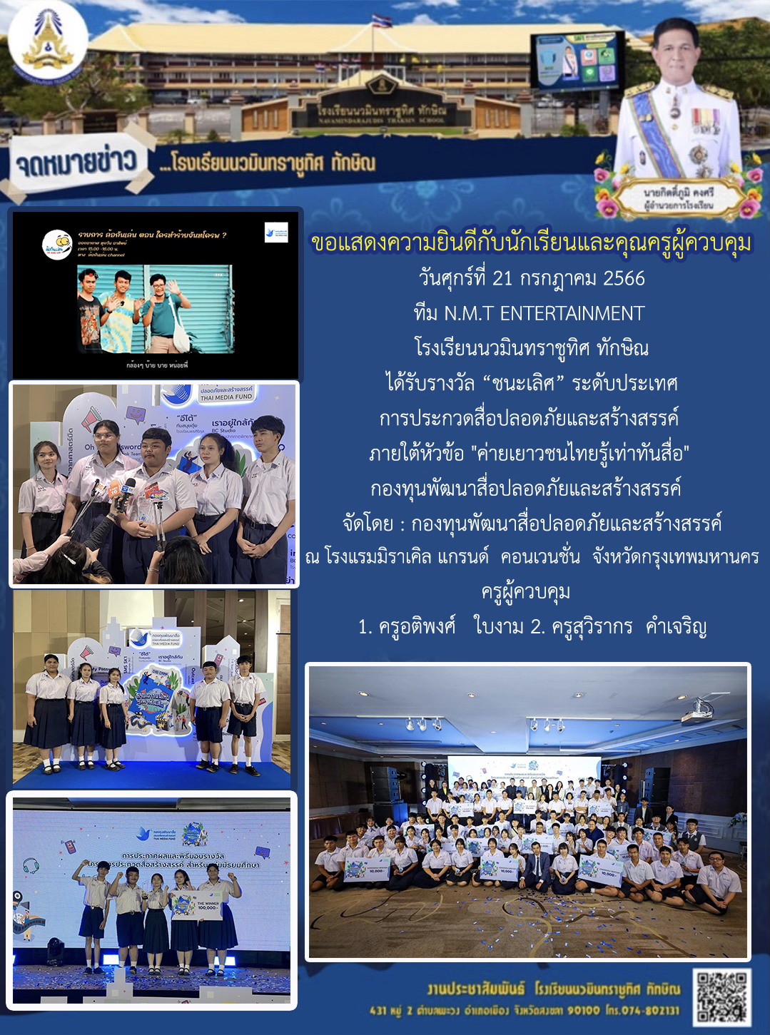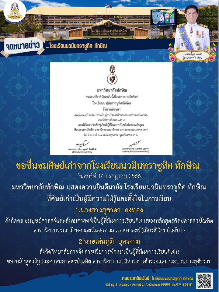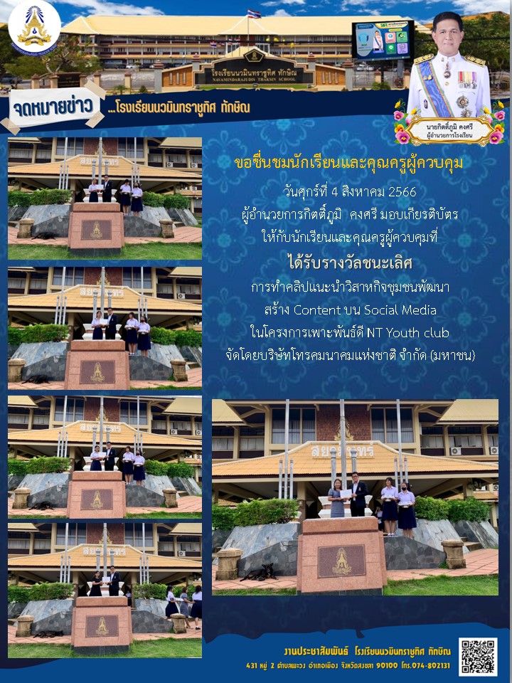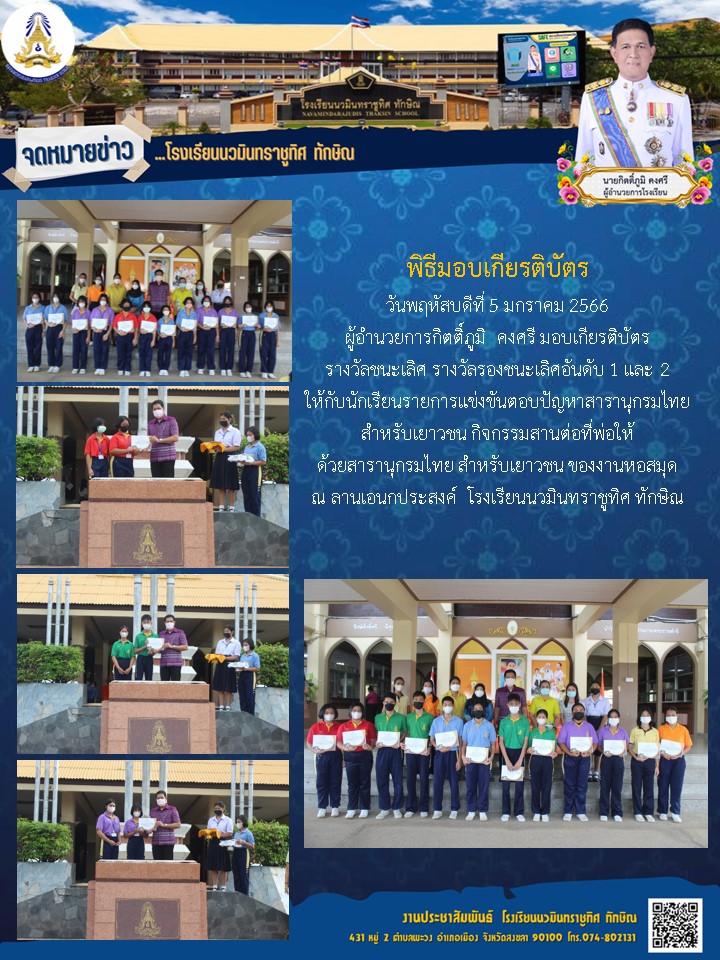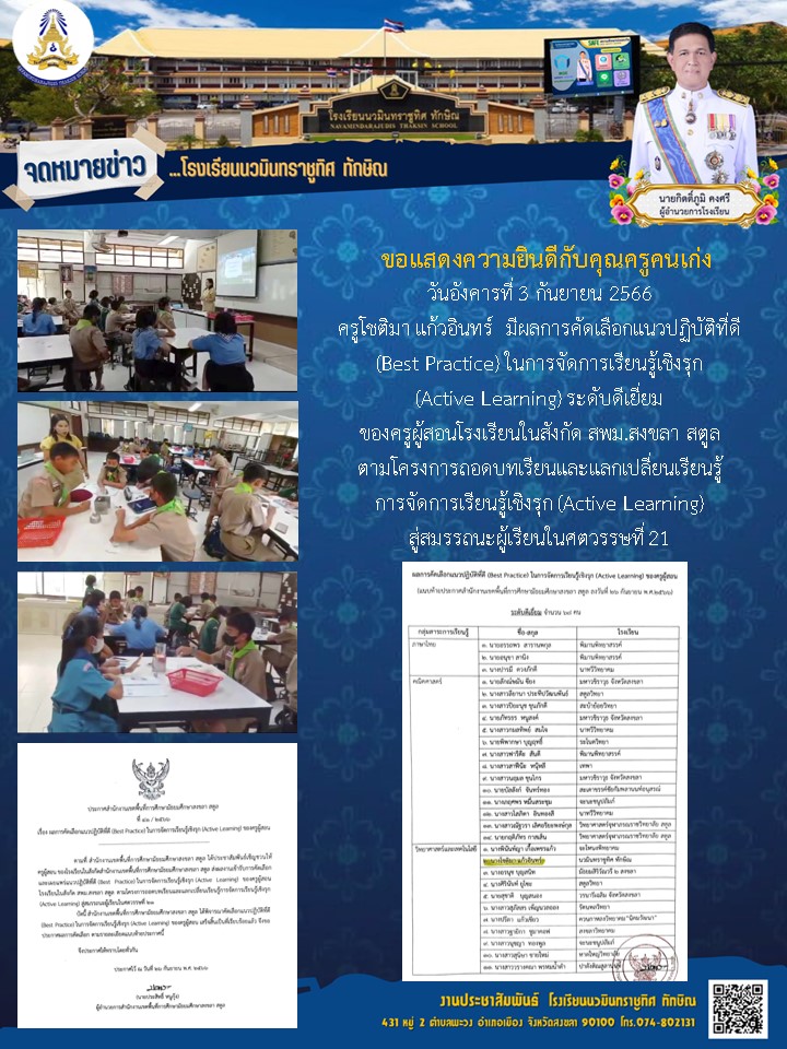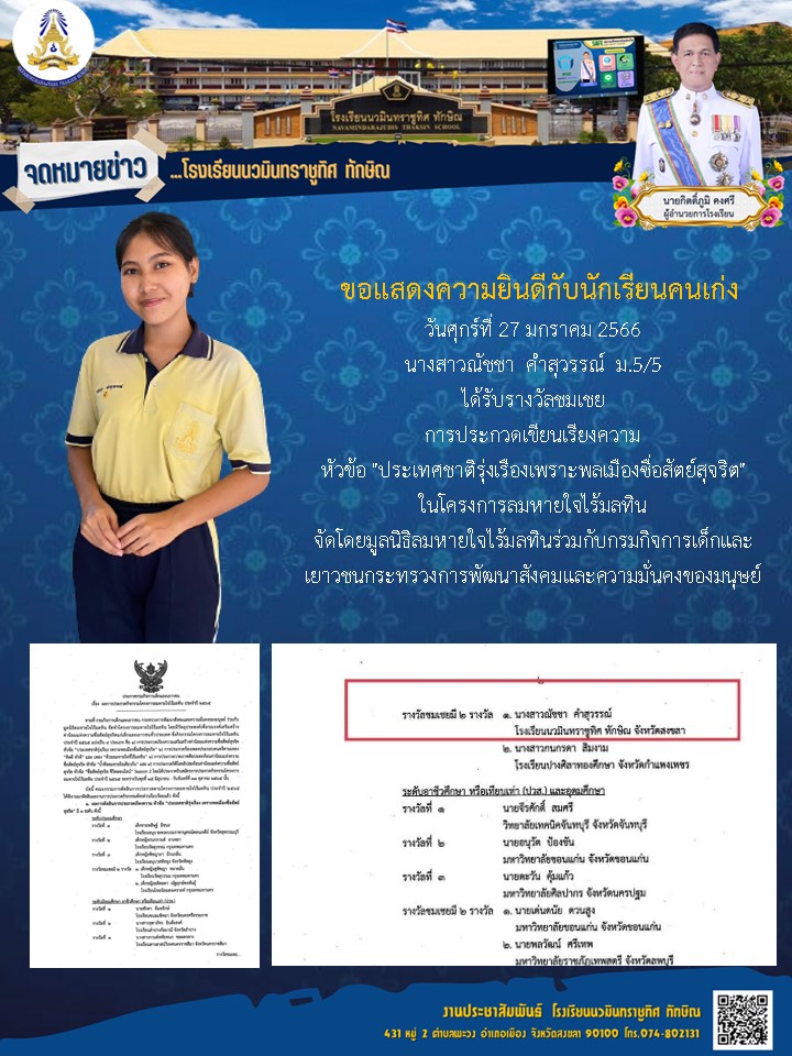 - จดหมายข่าว ขอแสดงความยินดีกับคุณครูณัฎฐ สวัสดี