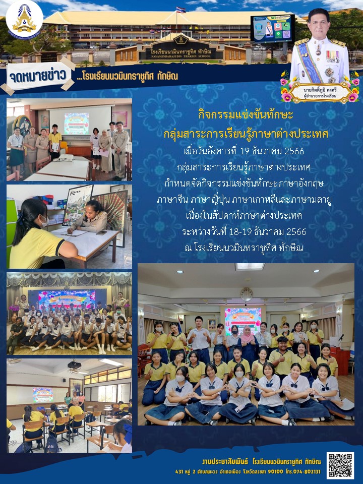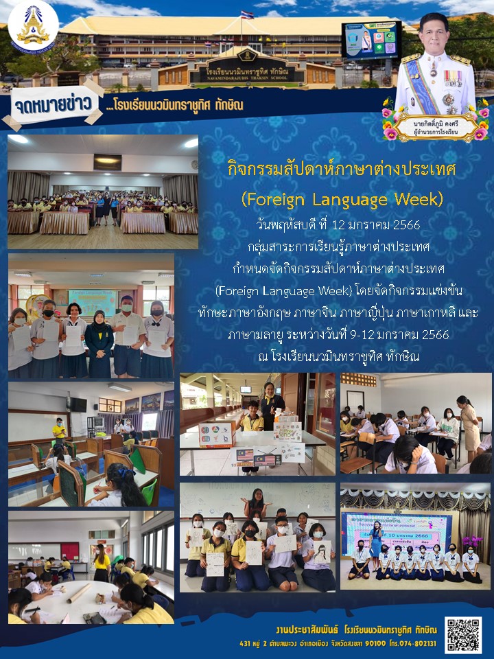 - กลุ่มสาระการเรียนรู้ภาษาต่างประเทศ จัดกิจกรรม Foreign Language Week ระหว่างวันที่ 9-12 มกราคม 2566 รายละเอียดเพิ่มเติม
