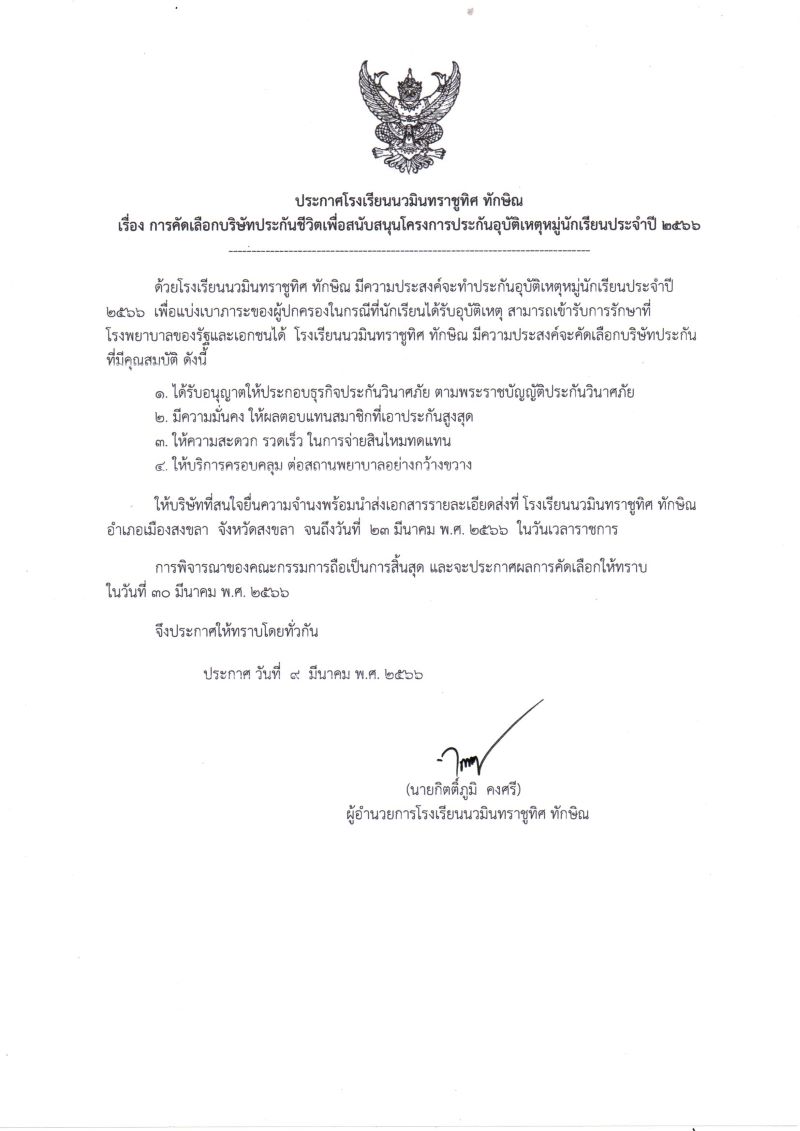 - ประกาศ รายชื่อผู้สมัครคัดเลือกผู้ประกอบการร้านค้าในสถานศึกษา |