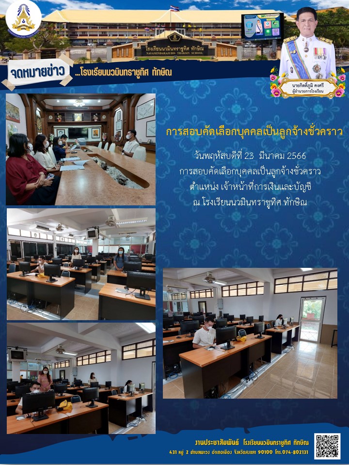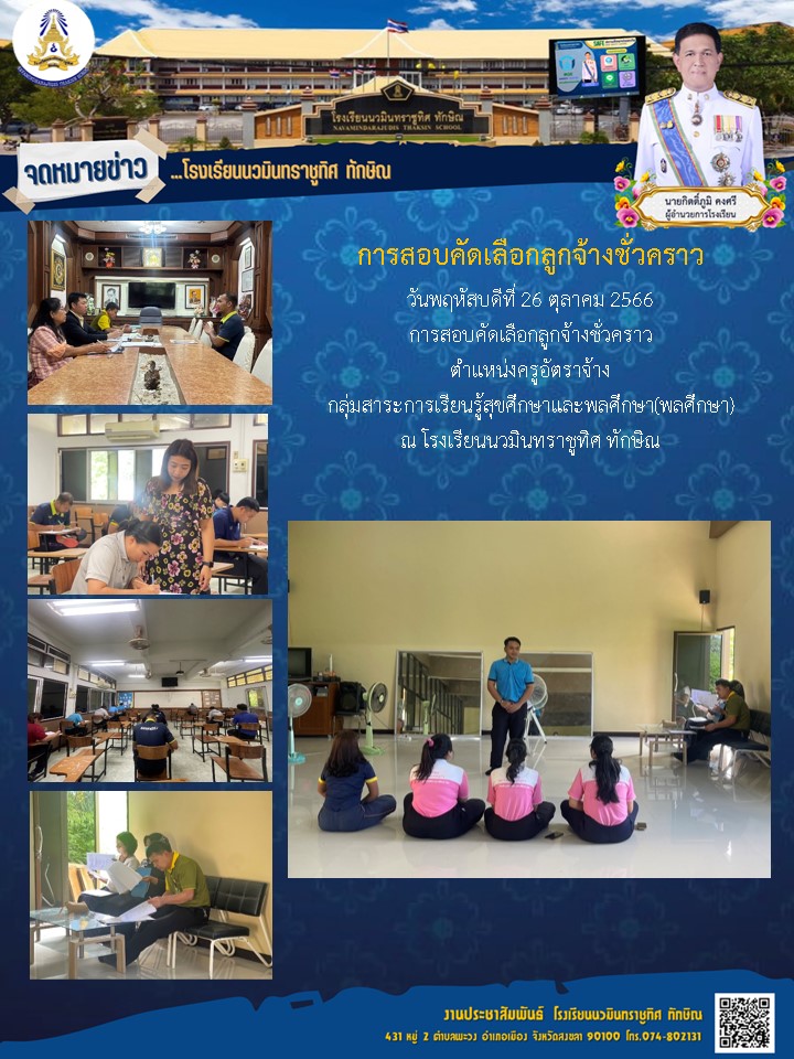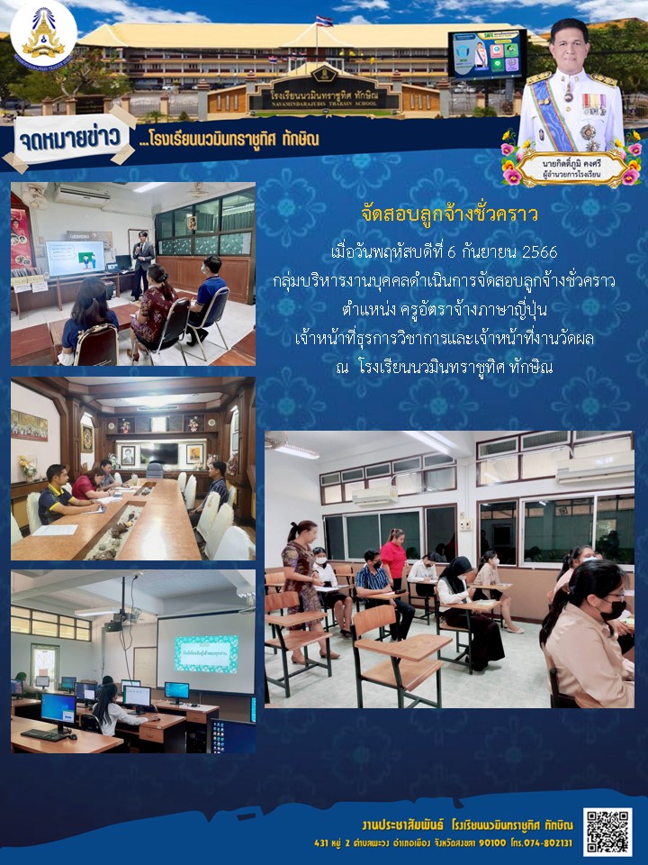 - ประกาศ รายชื่อผู้ที่มีสิทธิ์สอบคัดเลือกบุคคลเป็นลูกจ้างชั่วคราว ตําแหน่ง ครูอัตราจ้าง กลุ่มสาระการเรียนรู้วิทยาศาสตร์ฯ และกลุ่มสาระการเรียนรู้ภาษาไทย