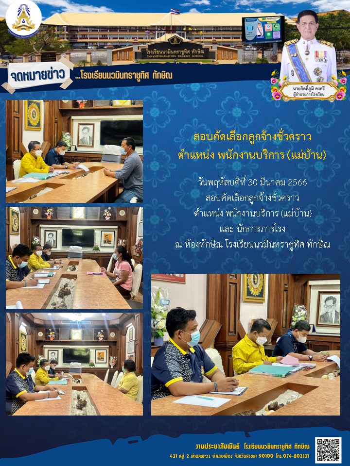 - ประกาศ รายชื่อผู้ได้รับคัดเลือกบุคคลเป็นลูกจ้างชั่วคราว ตําแหน่ง ครูอัตราจ้าง กลุ่มสาระการเรียนรู้วิทยาศาสตร์ฯ และกลุ่มสาระการเรียนรู้ภาษาไทย
