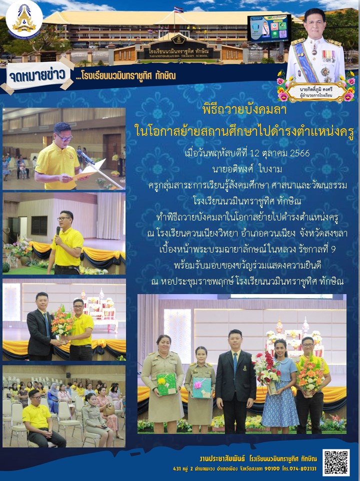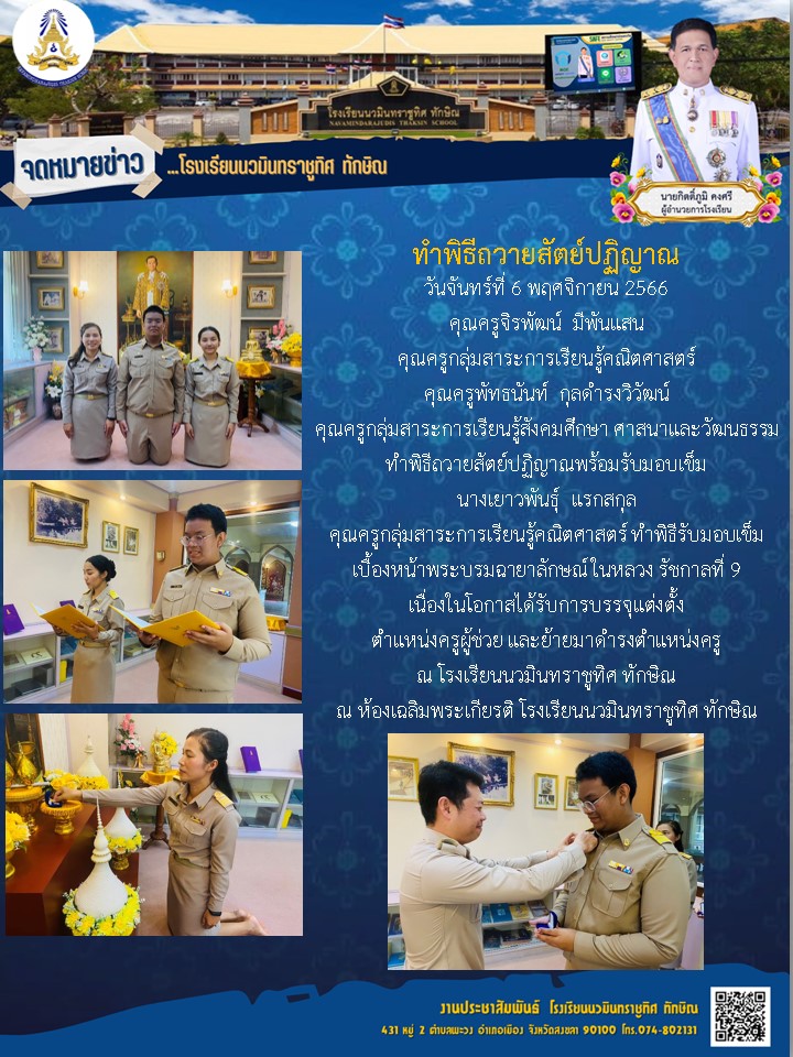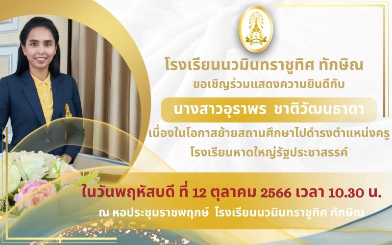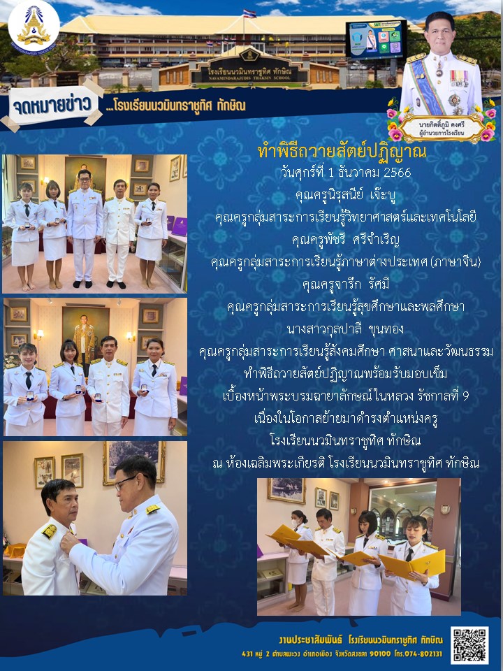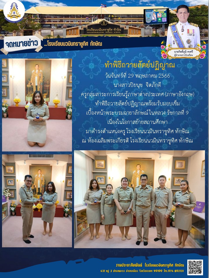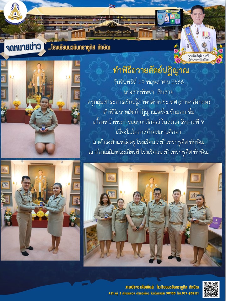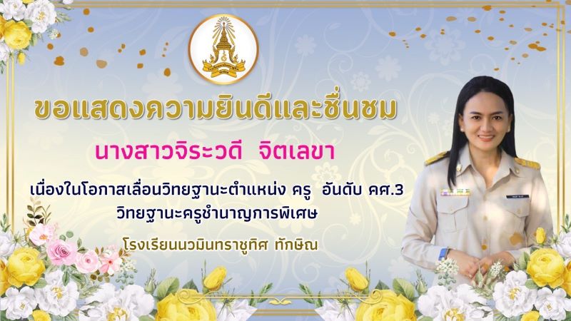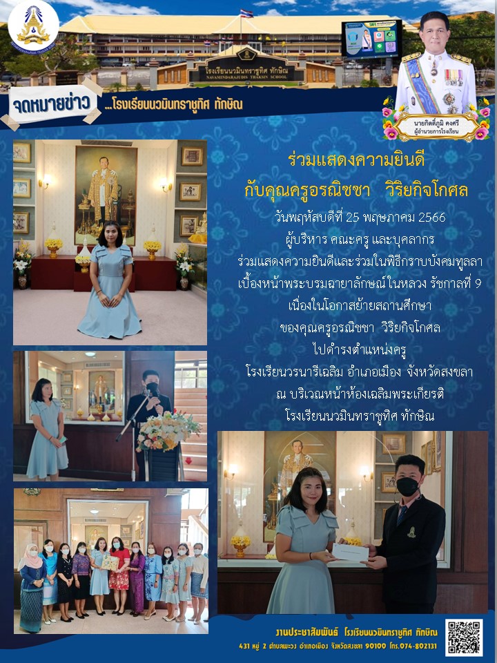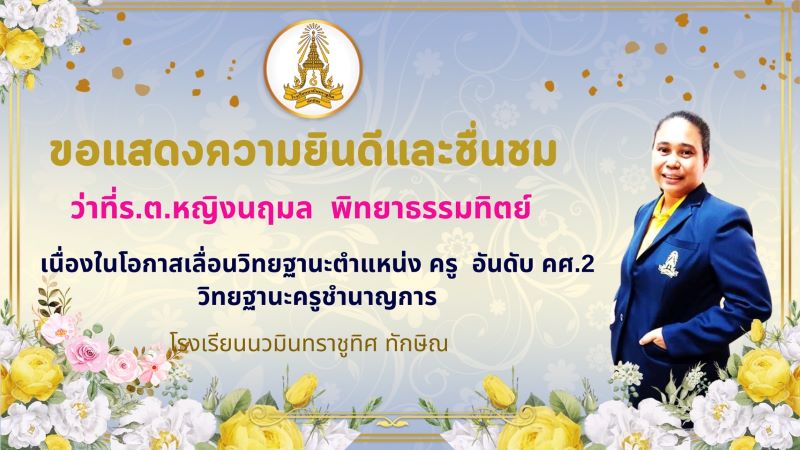 - ขอแสดงความยินดีกับคุณครูว่าที่ร.ต.หญิงนฤมล พิทยาธรรมทิตย์