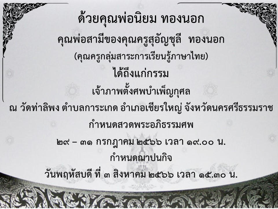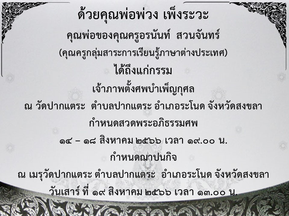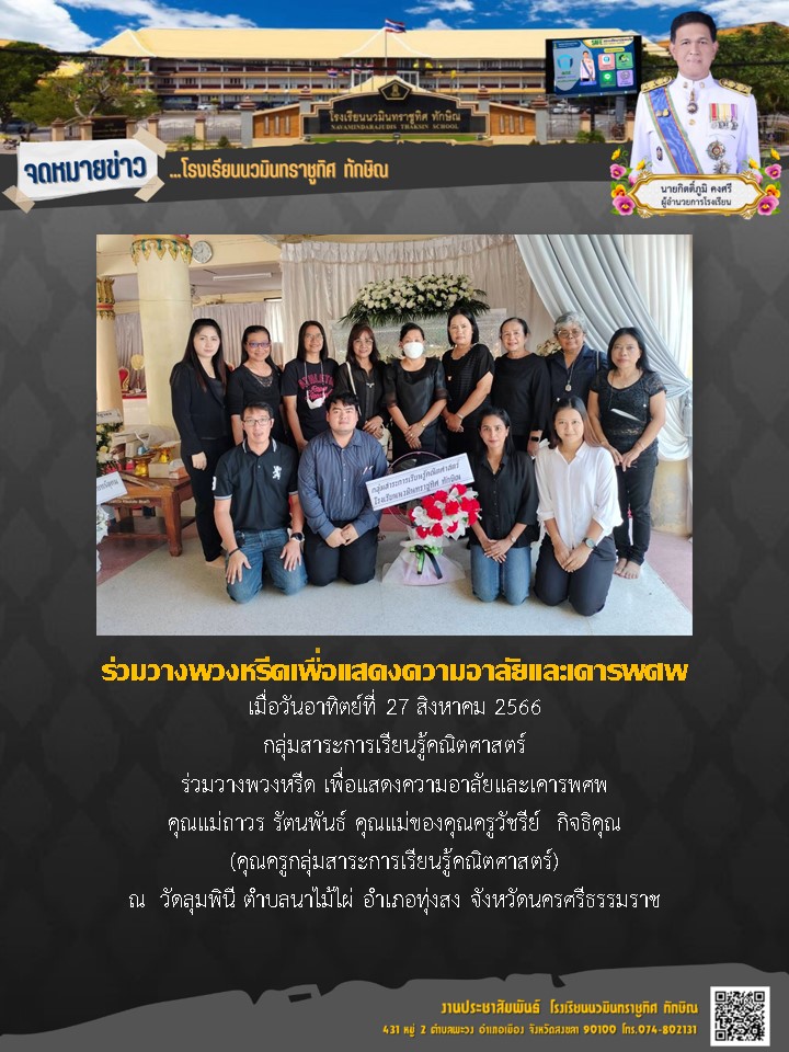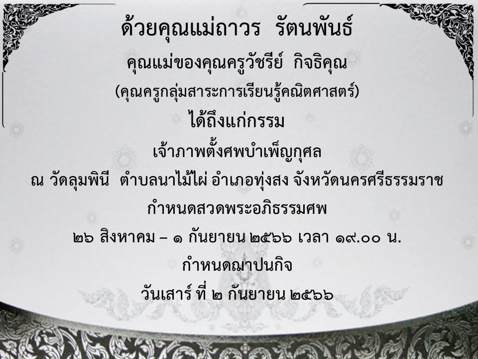 - ขอแสดงความเสียใจกับครอบครับอดีตท่านรองผอ.ถวิล จันทรา มา ณ ที่นี้