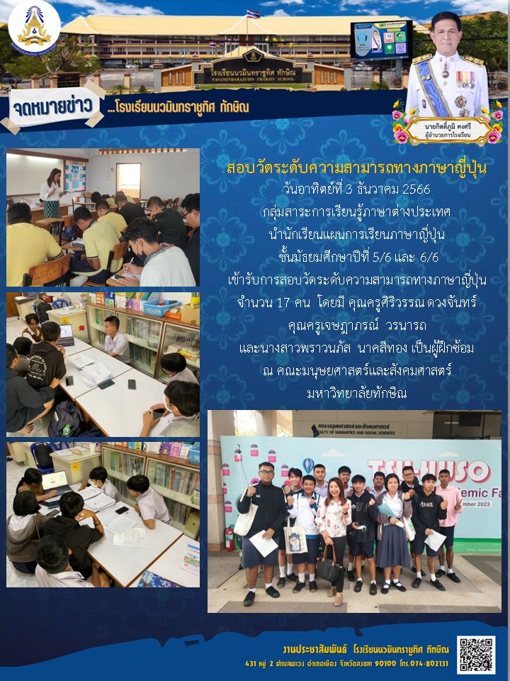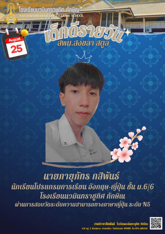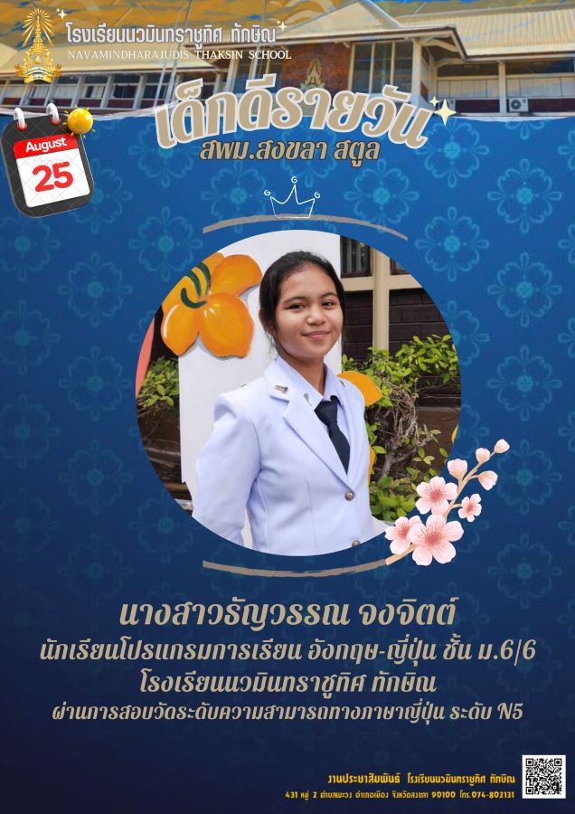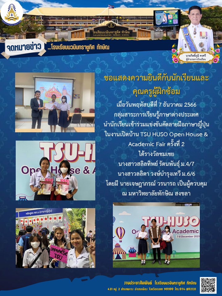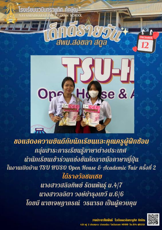 - ขอแสดงความยินดีกับนางสาวกชกร สงสังข์ ชั้นม.5/6 โปรแกรมการเรียนภาษาญี่ปุ่น