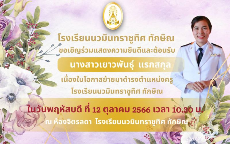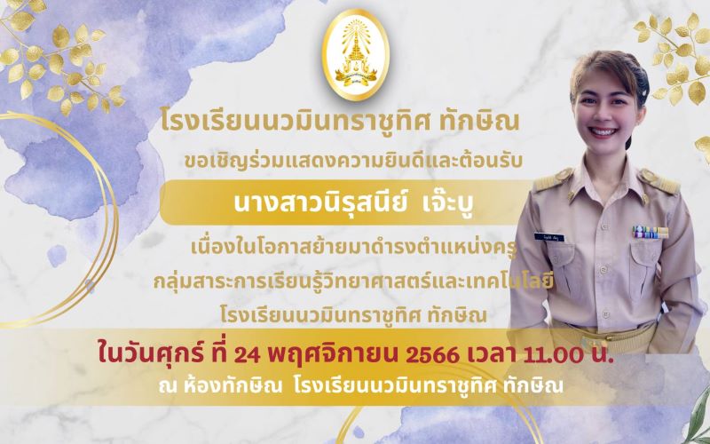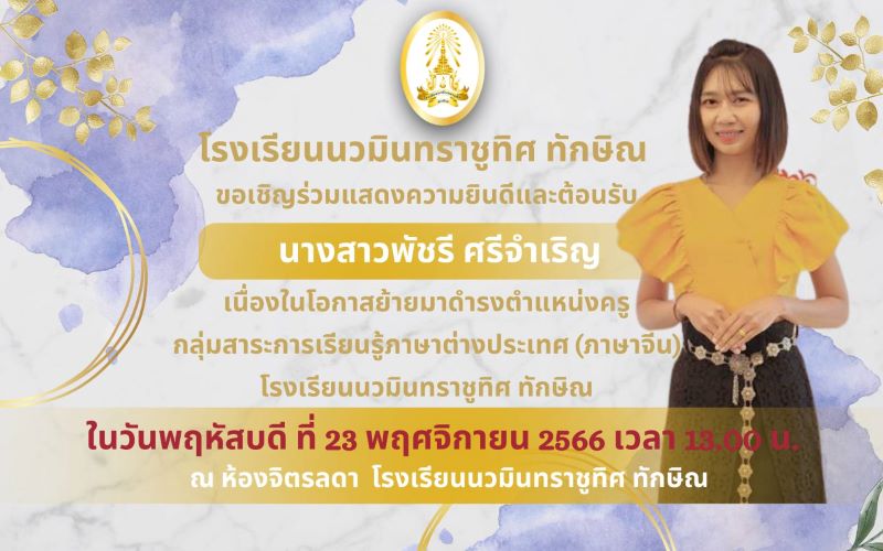 - ขอเชิญร่วมต้อนรับคุณครูพัชรี ศรีจำเริญ