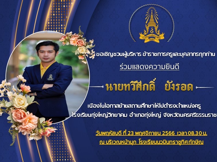 - ขอเชิญร่วมแสดงความยินดีกับคุณครูทวีศัก์ ยังรอด ในโอกาสย้ายสถานศึกษา