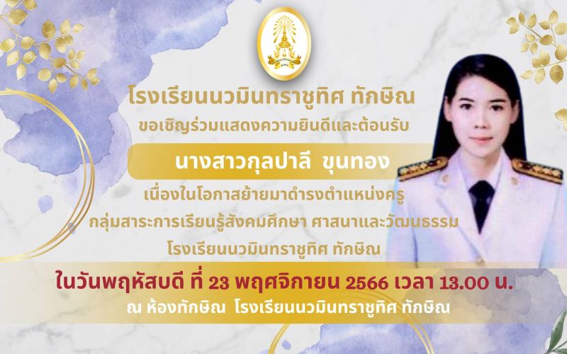- ขอเชิญร่วมต้อนรับคุณครูกุลปาลี ขุนทอง