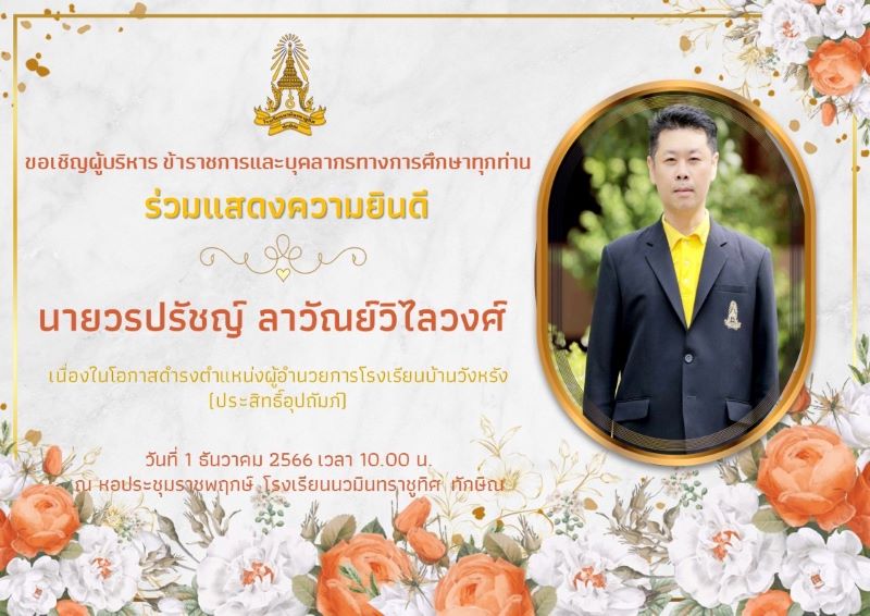 - ขอเชิญร่วมแสดงความยินดีกับผู้อำนวยการวรปรัชญ์ ลาวัณย์วิไลวงศ์