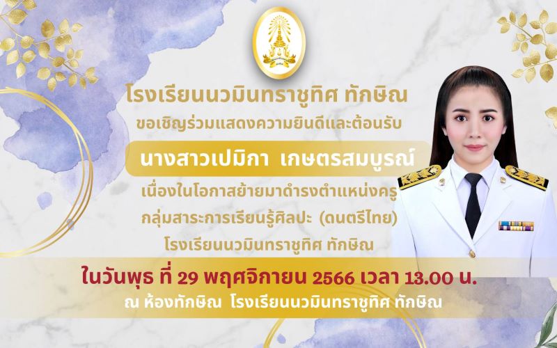 - ขอเชิญร่วมต้อนรับคุณครูเปมิกา เกษตรสมบูรณ์