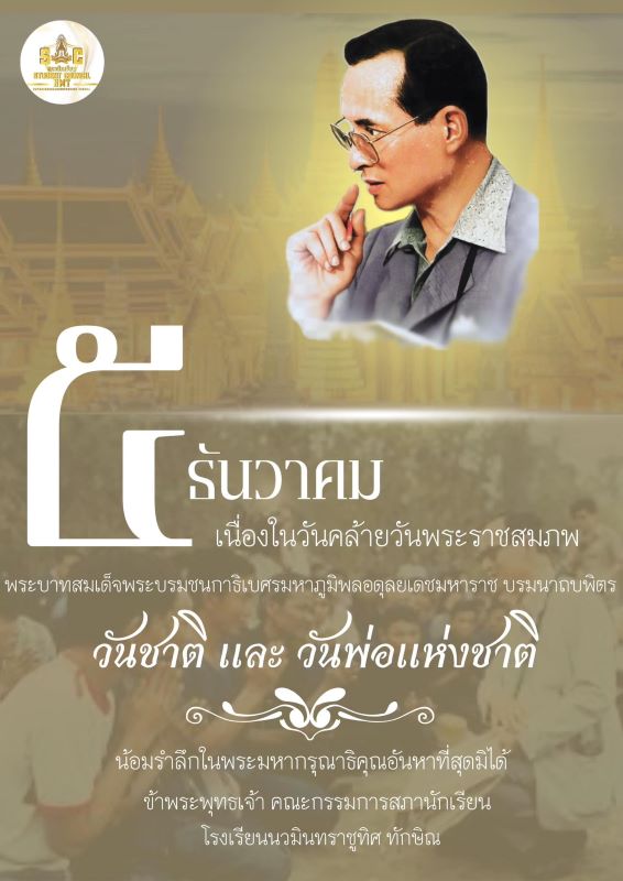 - "๕ ธันวาคม" วันคล้ายวันพระราชสมภพ พระบาทสมเด็จพระบรมชนกาธิเบศร มหาภูมิพลอดุลยเดชมหาราช บรมนาถบพิตร เป็นวันชาติ และวันพ่อแห่งชาติ