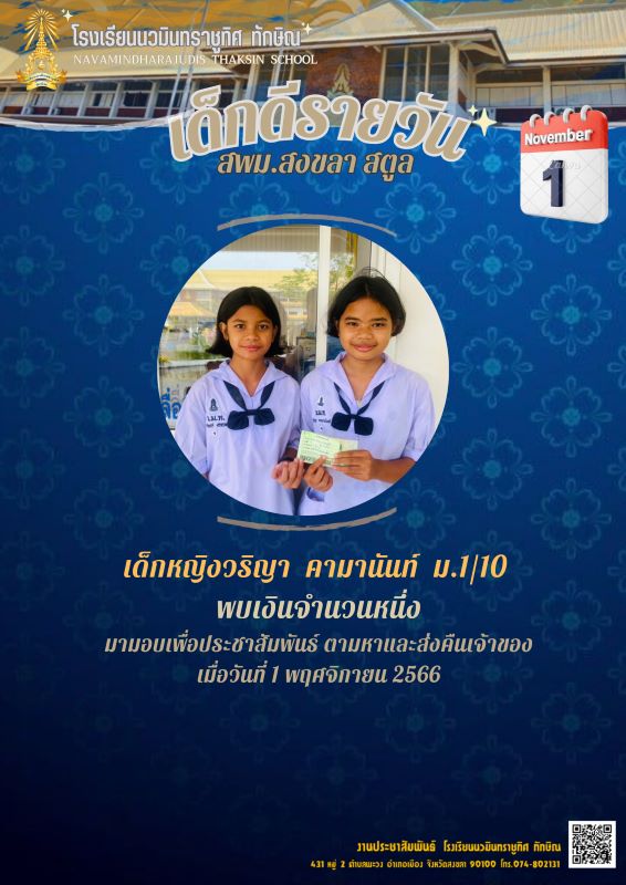- เชิญชวนนักเรียนเข้าร่วม กิจกรรมวันเด็ก ที่หอสมุดพูลศรีฯ